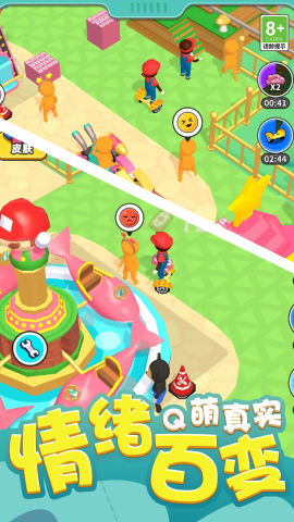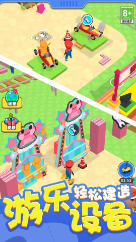玩家可以自由的规划游乐场的布局,包含了休息区、水饮区、休息区等等。