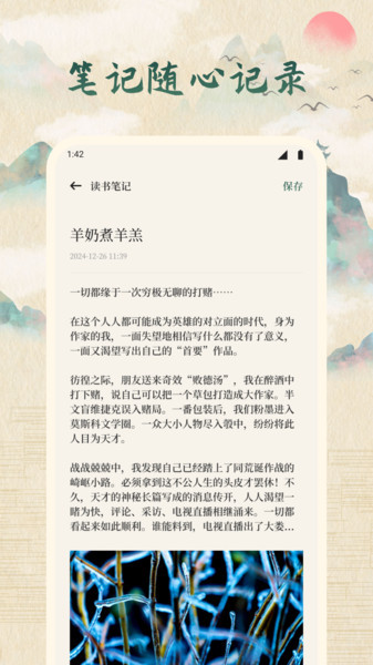 4、可以添加读书笔记,记录阅读时候的想法,帮助强化阅读的记忆。