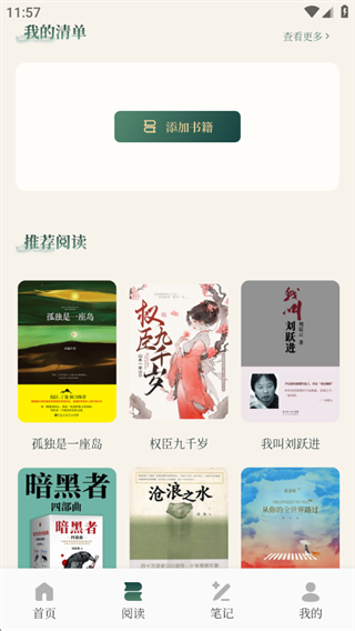 3、除了古诗词之外也有很多的推荐的书籍,可以加入书单随时阅读;