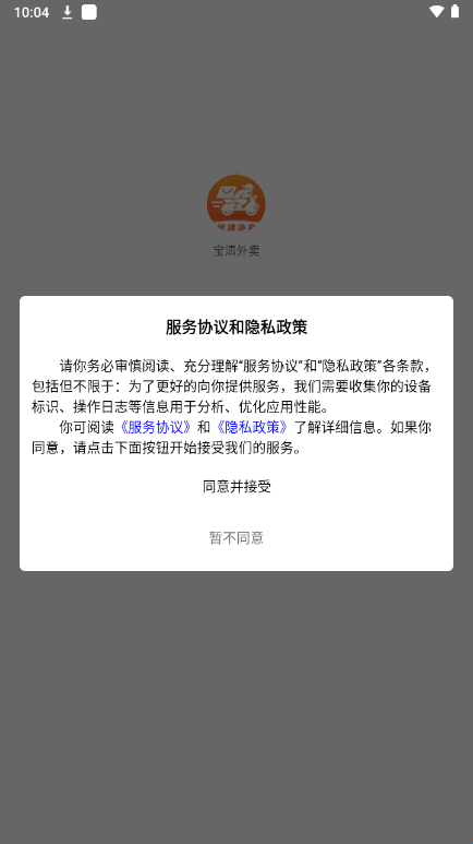 1、广大的用户需要在平台来下载这款外卖app最新版,然后点击同意就可以;