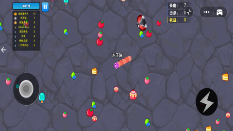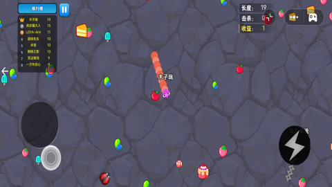 只需要在屏幕中操纵蛇蛇去吃果,去截住其他玩家的蛇头即可击杀,游戏上手简单但乐趣无穷