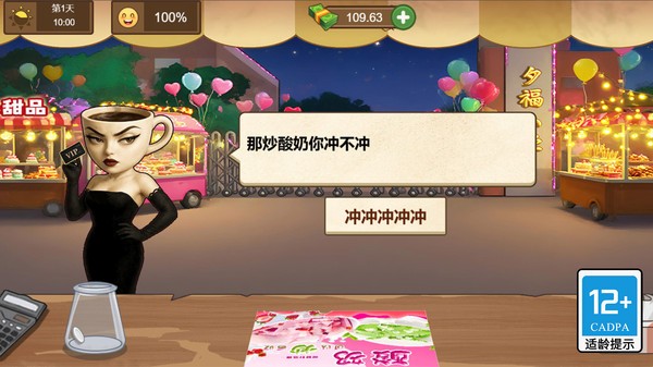 3.贩卖收益:制作完成的酸奶卷可进行售卖,玩家通过获得金币不断积累资金,用于扩展摊位规模,解锁更多玩法与经营挑战。
