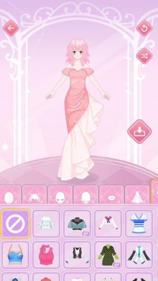 3、只需点击裙子的图标,就能穿上各个衣服,自由的试穿搭配,还能免费保存截图。