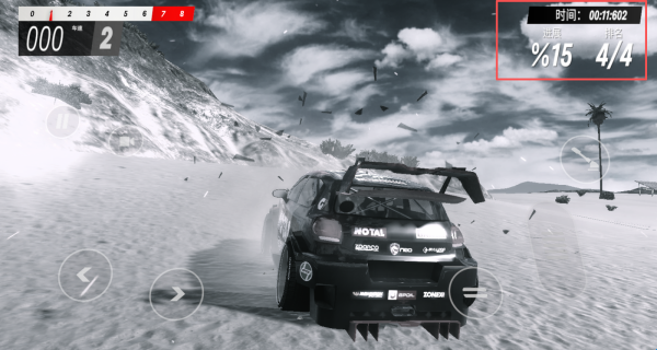 2、滑动左侧按钮控制车辆的方向,点击右侧按钮进行加速。