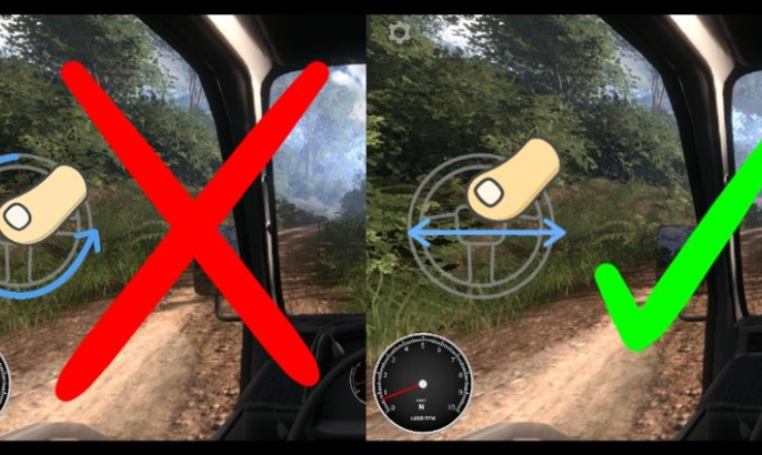 1、滑动方向盘按钮控制卡车的方向,点击右侧的按钮,可以调整行驶的档位或者刹车。