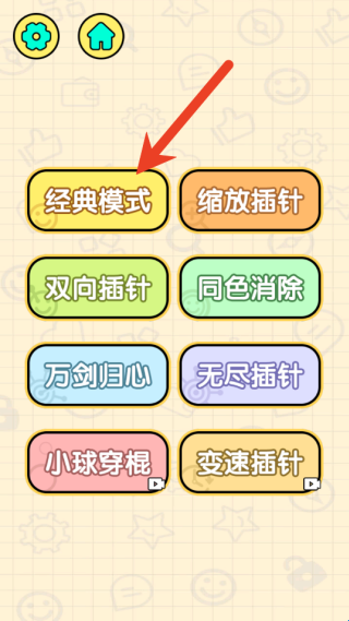 1、开始游戏后,首先选择适合自己心仪的模式,仔细观察屏幕上不断旋转的圆盘,留意圆盘上已有针的分布情况和空缺的插孔位置。