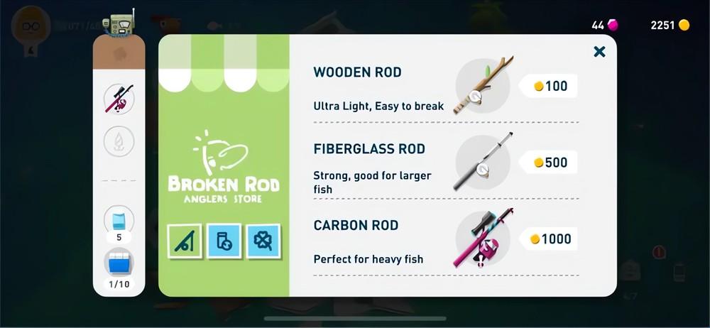 起初,你会发现钓竿时不时就会断裂。断竿不仅影响捕获成功率,还会让你为运输和购买新竿花费额外金钱。为避免这种情况,我们建议在能力允许时立即购置最昂贵的钓竿。虽然500或1000金币的价格看似昂贵,但与其错失优质甚至稀有鱼获,不如将资金投入此处更为明智。