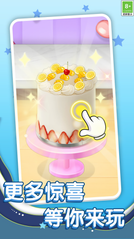 1、进入游戏后,首先会有一段生动的新手引导,教你熟悉基本的操作,例如如何选择合适的模具烘焙蛋糕胚,以及使用裱花袋进行奶油的涂抹,为后续创作打下坚实基础。
