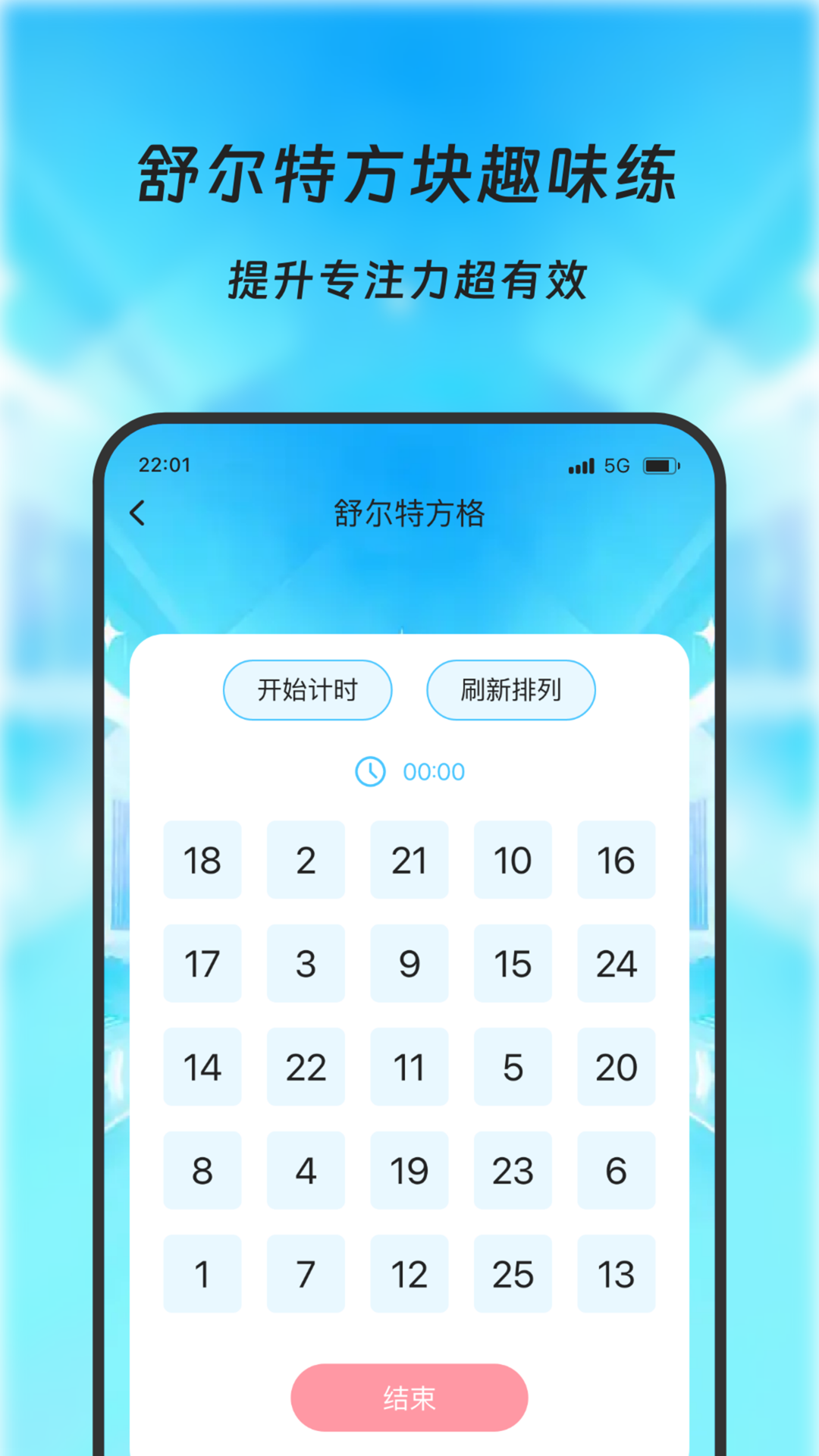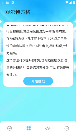 2、加入了益智小游戏,例如从打乱顺序的数字里面从1-60依次点出来,让你的双眼得到适当的放松,同时锻炼一下反应能力也不错;
