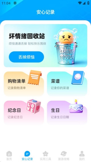 3、安心记录,是可以进行购物清单,菜谱,纪念日,生日记录的。