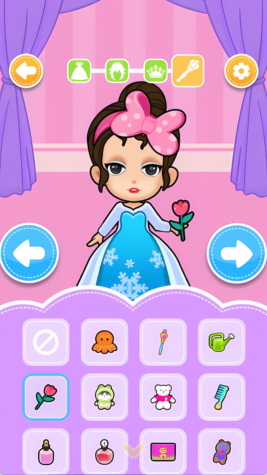 我为公主装扮官方版是一款类似于童话风的换装游戏,里面有许多精致漂亮的服饰装扮,从公主发型与妆容到眼影调整和唇色,以及穿衣装扮都有,玩家可以通过这些组合打扮出不一样的公主,除了这些还有各种专属背景可以搭配。