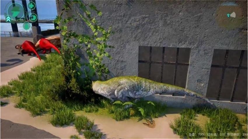 2、利用虚拟键盘控制迅猛龙的奔跑、转向与爪击动作,主动追击并吞噬不同生物。