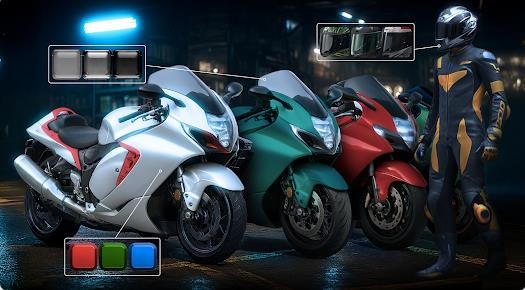 3、通过车库系统,玩家可以解锁并收集各种摩托车,并利用改装和定制功能打造个性化座驾。