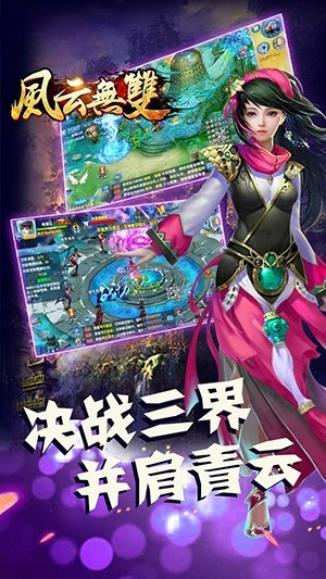 风云无双是一款以仙侠为题材的角色扮演类的游戏,游戏中画质精美,战斗效果酷炫充满激情,还有宠物、神器以及加好友等功能,在这里可以组队打打副本,对决PK或者是加入仙盟,在这里可以感受前所未有的体验以及无限自由格斗。