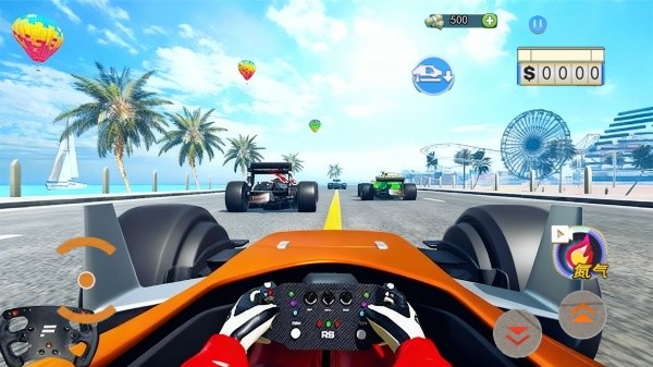 3、仔细观察对手行驶路线寻找超车机会,同时防范后方车辆突然袭击,学习不同赛道捷径路线缩短比赛用时。