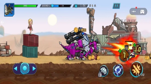 超级恐龙冲击是一款非常好玩的动作类游戏,游戏中有各种各样的恐龙,不同的恐龙攻击方式和技能也会不同,有近战攻击和远程攻击等,玩家需要操控恐龙参与精彩的恐龙大战,当玩家通过关卡后会获得奖励可以用来升级恐龙的武器和装备。