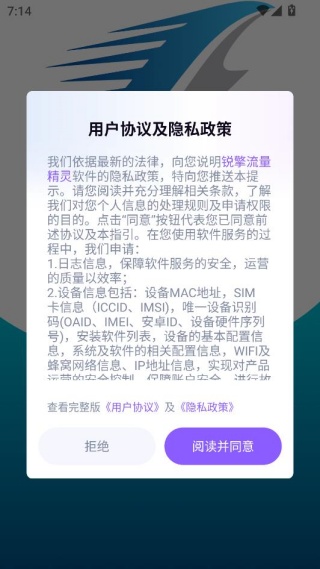 1、完成应用下载安装后,需阅读并同意相关协议条款,开启流量管理服务。
