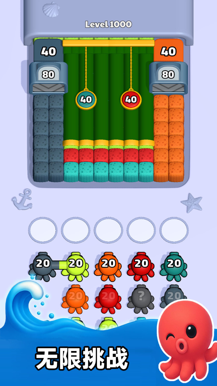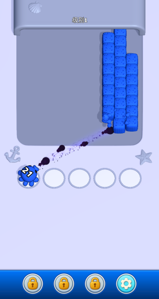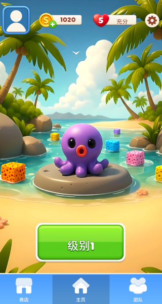 1、进入游戏后,找到界面中的可爱章鱼角色,点击级别1开启首关挑战,熟悉基础操作逻辑。
