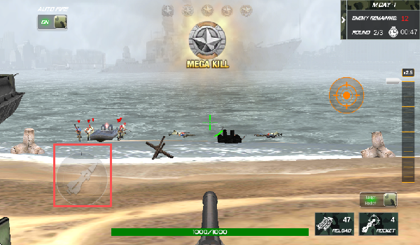 4、通过下方的火箭筒可以攻击敌方的船只,需要你瞄准点击发射才能够发起攻击。