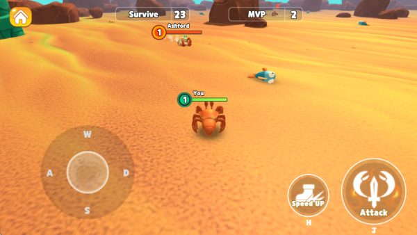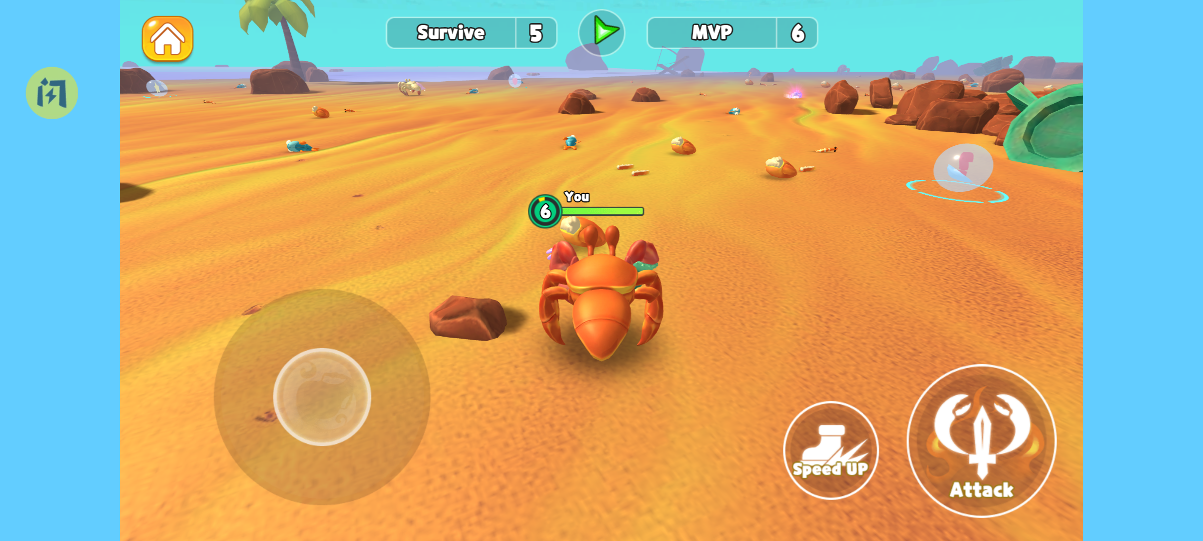 1.是一款以沙滩竞技为主题的多人在线PVP游戏。24名玩家将扮演形态各异的螃蟹,在动态变化的场景中展开激烈角逐。