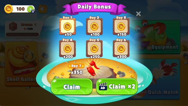 3.在游戏主界面的画面上方,点击“sign”即可进入签到界面,获取金币奖励。