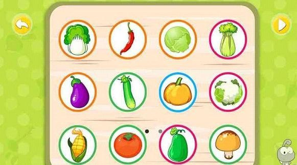 3、轻松的游戏操作方式,自由的进行点击,就能让小朋友,认识各种各样的蔬菜。