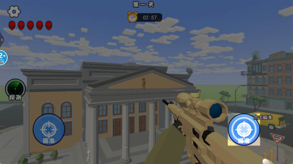 1、玩家可以在不同场景中和敌人展开射击对决,要利用有限的子弹消灭所有敌人,保证射击命中率。