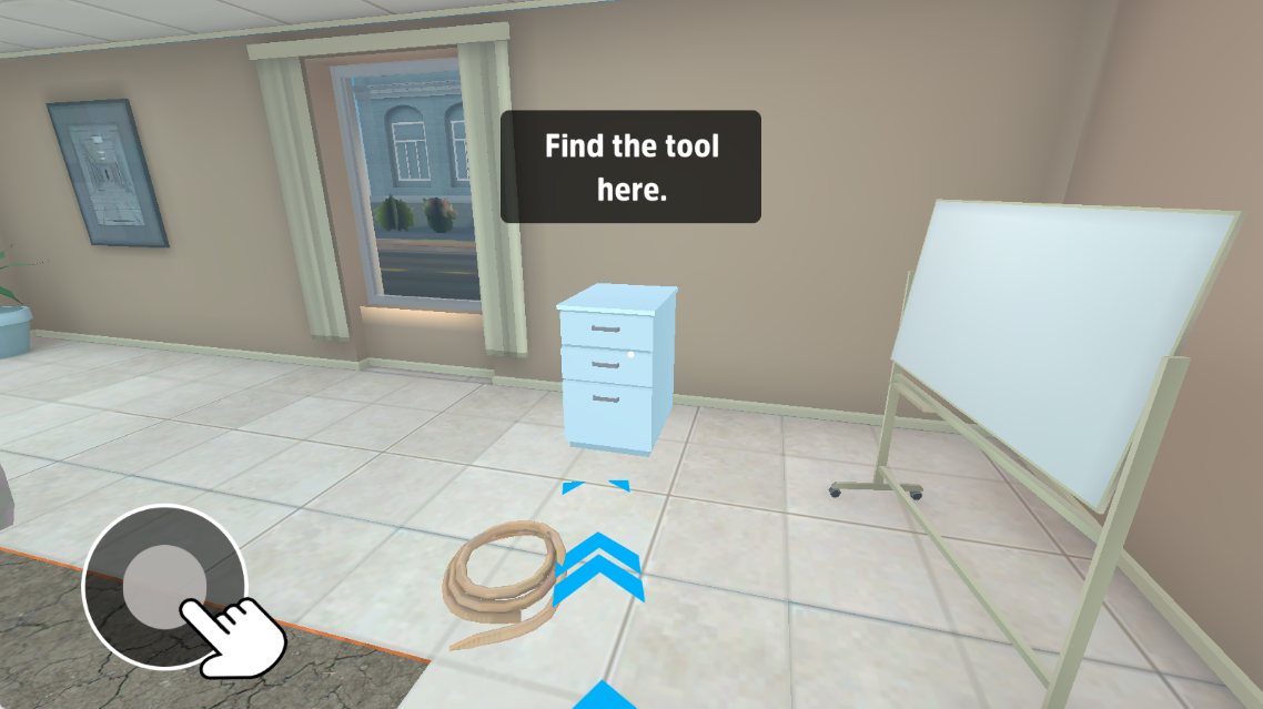 1、通过点击场景中的交互点获取各类工具道具,为挖掘行动做好准备。