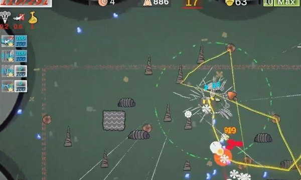 3.每一次胜利都能获得资源用于强化你的蘑菇士兵,让它们的属性和技能随着游戏进程不断成长进化。