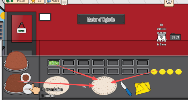 2、顾客光顾时需要根据他们头顶显示的需求来制作对应的土耳其特色美食。