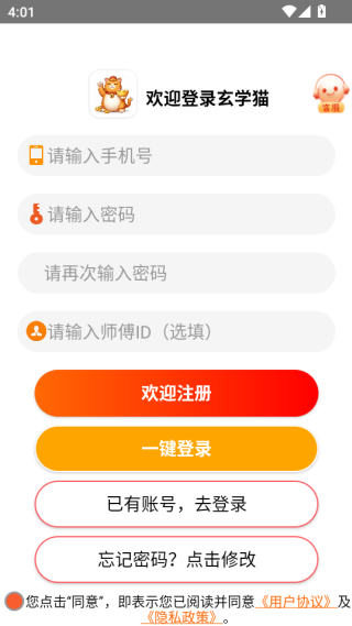1、首次启动需在弹窗页面点击同意用户协议,进入账户验证流程。