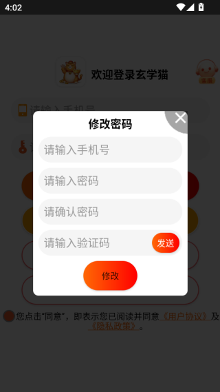 4、密码重置功能通过手机验证码校验,支持在线修改登录密码。