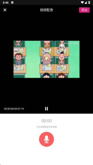 4、在视频配音页面中点击录制即可开始配音,配好后进行导出即可。
