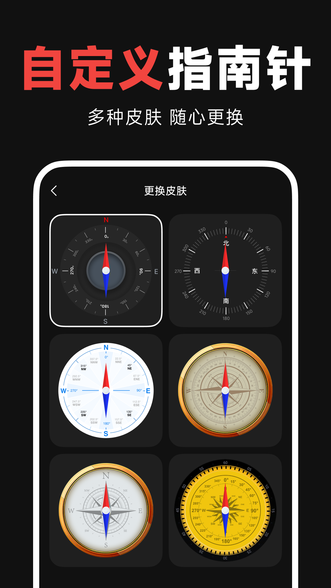 3、传统罗盘界面模拟实物刻度盘,具备磁场校准与方位记忆功能。