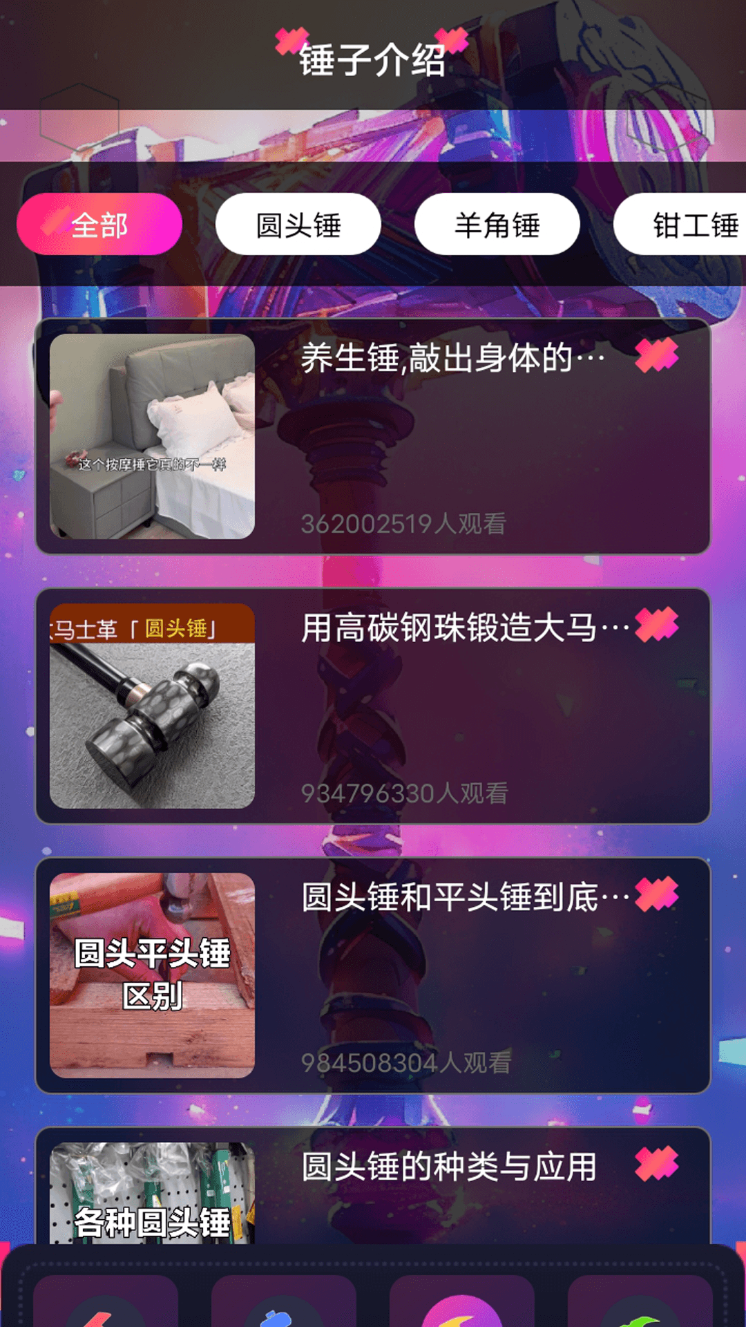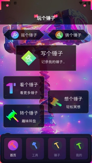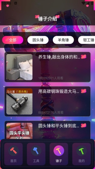玩一个锤子表面上是一个很无聊的用做自嘲的软件。把所有都当做是一个锤子,给每个人都起名为某某锤。但是实际上这款软件内置了电工知识,是一款视频类型的软件,有丰富的电工有关知识的教程。界面设计有点凌乱。不过没关系,功能分类还是十分明确的。用户可以轻松找到自己想要的功能和教程。