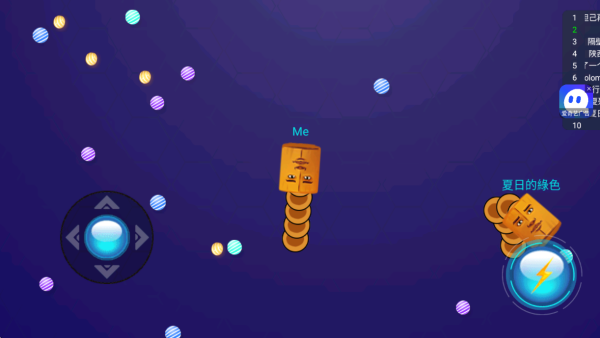 贪吃蛇底盘大战是一款横屏闯关游戏。主要玩法就是吃地图中的小豆子,吃的越多长得越大、但是撞到别的贪吃蛇身上就会变成最小的贪吃蛇。这款游戏与其他同类型游戏最大的不同就是它有智能移动预测功能,能帮玩家减少无效移动。游戏过程中需要避免撞到地图边缘和其他贪吃蛇的身体,紧张刺激的同时还有各种小道具可以用来改变战局。