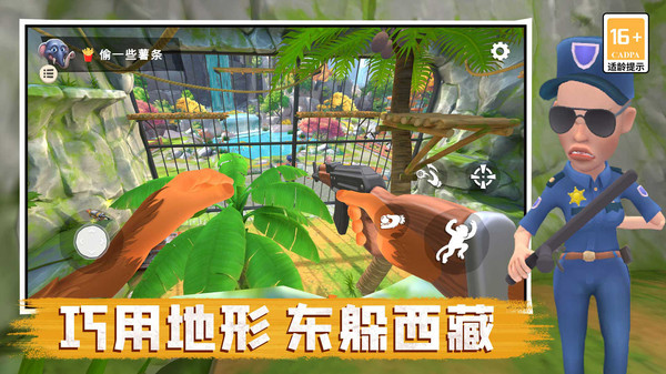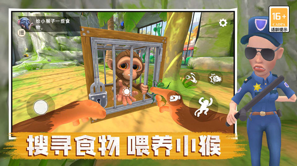 1、玩家在游戏中将扮演一只生活在现代化动物园笼舍里的猴子,你的世界被限制在这样一个狭小的仿真环境之中;