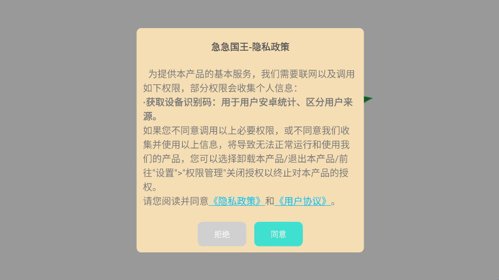 1、下载好游戏后打开,在阅读《隐私政策》和《用户协议》后点击“同意”;