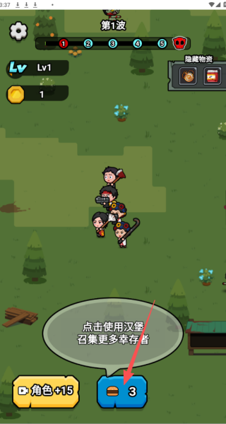 1、进入战场后点击下方汉堡按钮召唤更多幸存者,扩充小队规模。