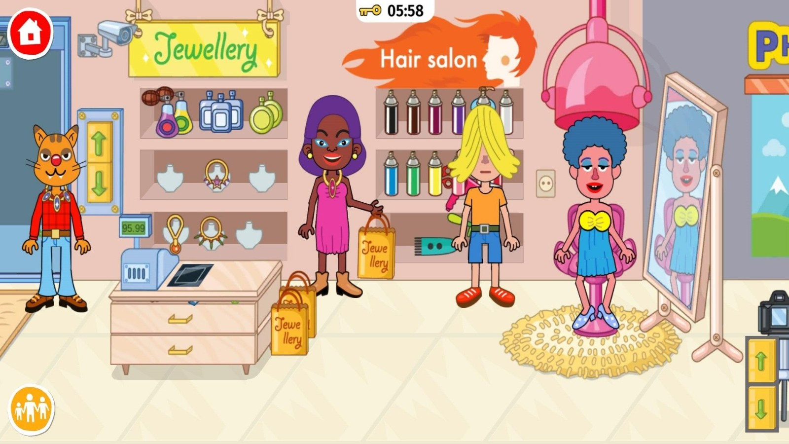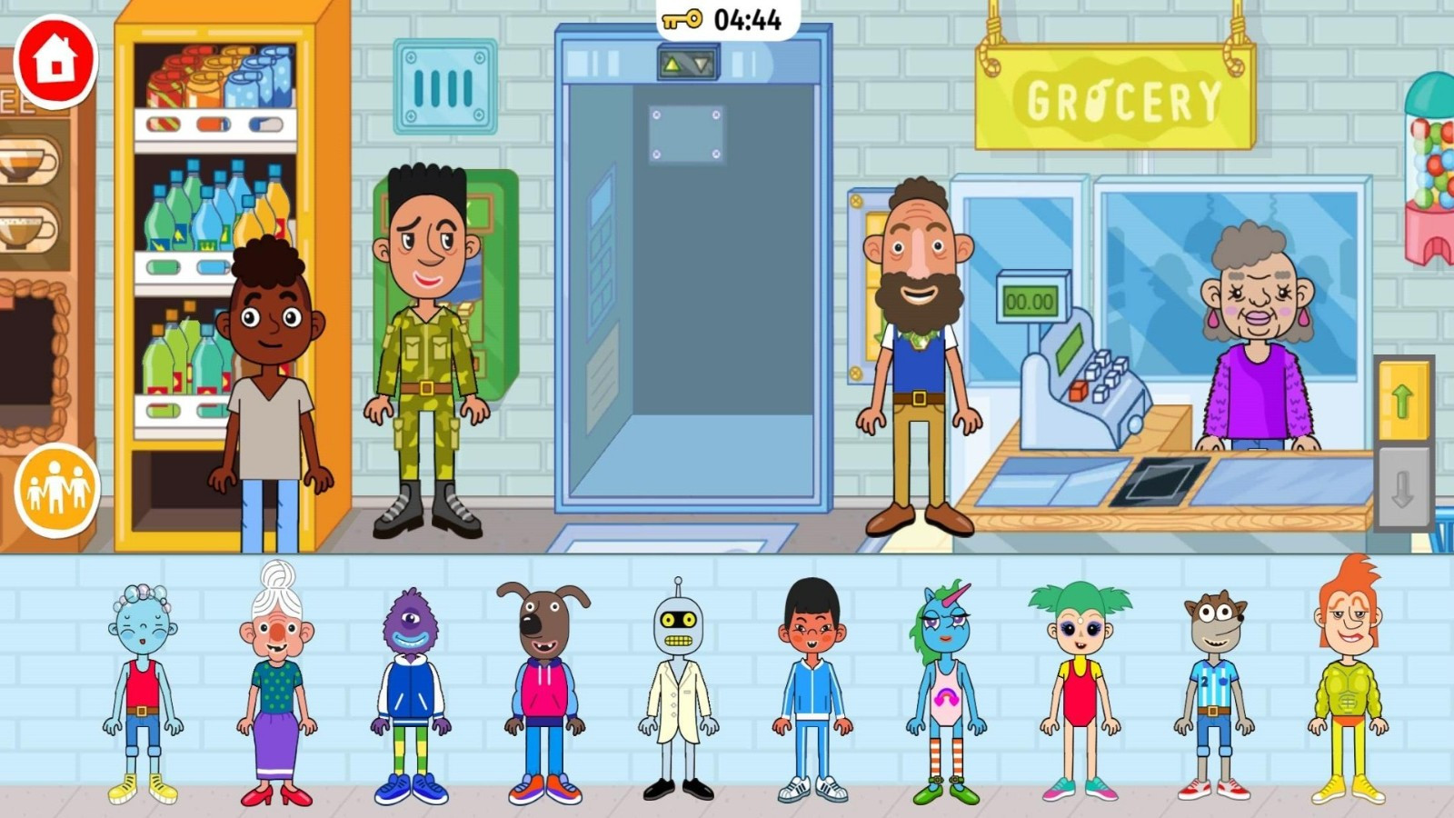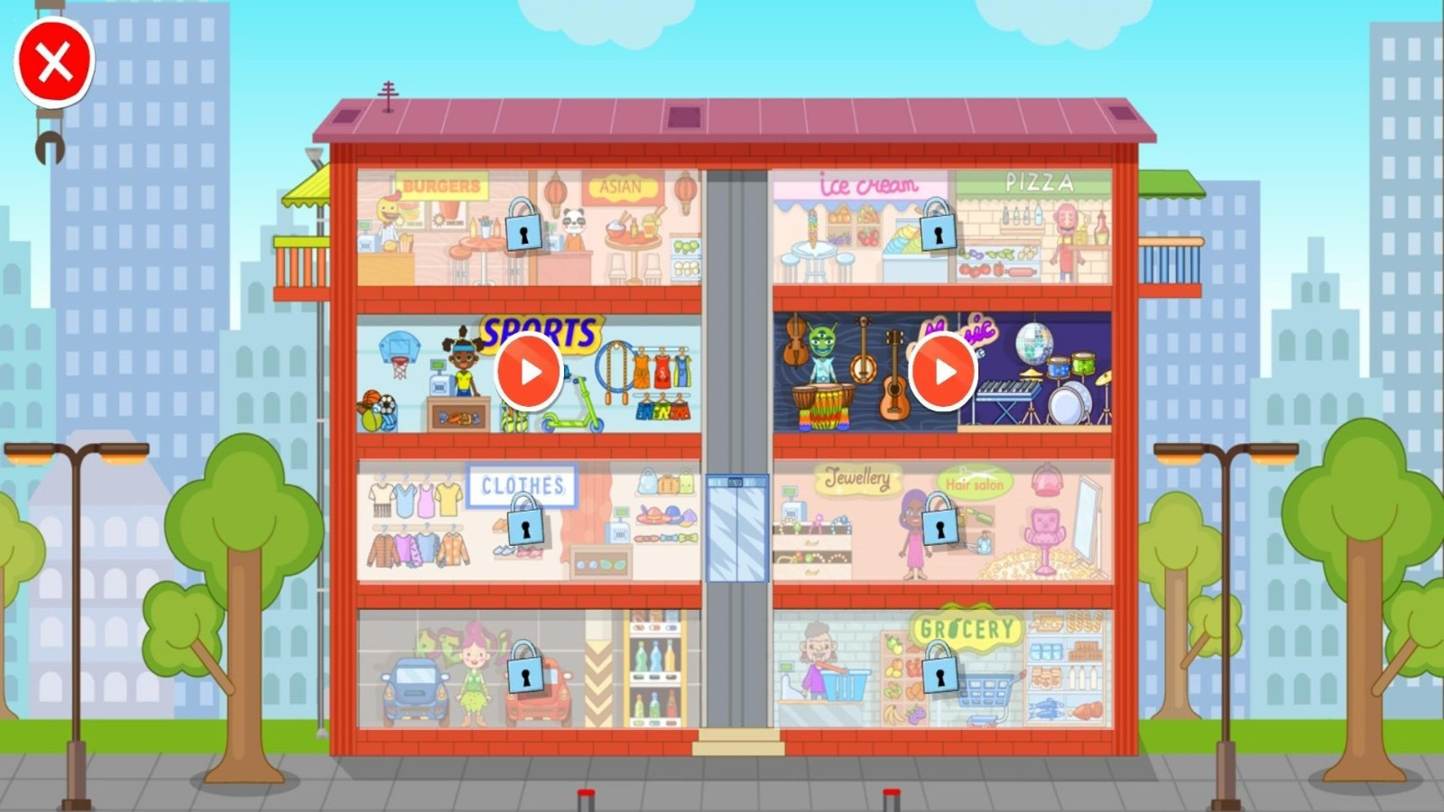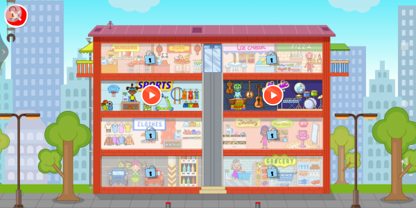 1.以卡通画风构建的沉浸式商场世界,融合探索与互动体验,呈现多元生活场景与趣味叙事空间。