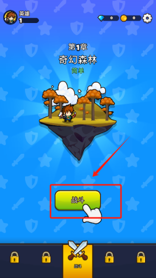 1、在本站下载游戏后进入,首先我们来到了第一章奇幻森林,点击战斗开始游戏。