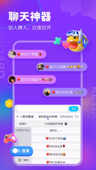 知音键盘这款软件是一款转为不会聊天的人设计的,“知音键盘,轻松追求爱”。下载好这款软件之后就会自动为你生成话术,根据当前的聊天场景和对象,教会你正确的聊天方式。一步步提高你的情商。同时这也是一款交友软件,完全免费试用。软件内还能与其他人分享话术,交流使用心得,早日脱单。