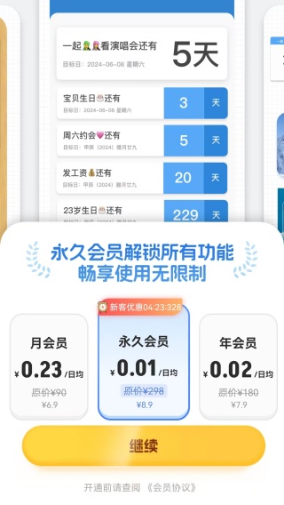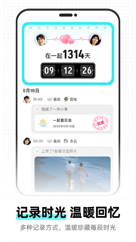 2、覆盖纪念日、目标节点、时光回忆等多种场景,既支持未来日期倒计时,也可记录过往时光正数。