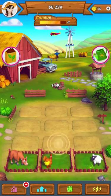 1、玩家进入农场后,通过不断点击完成播种与收割过程,节奏轻快,易于上手。