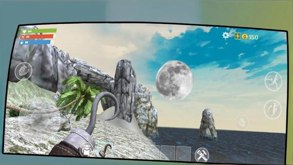 1、点击开始游戏进入荒岛场景,利用初始工具搭建基础生存基地,为后续求生提供安全落脚点。