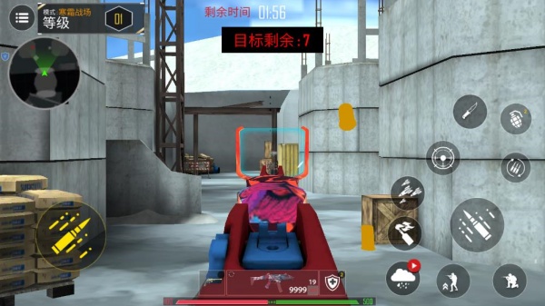 3、进入战场后移动角色探索地图,收集散落的武器与资源,精准射击目标,同时关注任务进度与剩余时间。