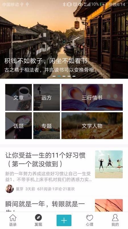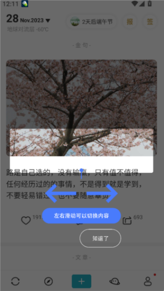 3、在阅读过程中左右滑动屏幕,可以顺畅切换不同的语录、短文或图文内容,沉浸式享受阅读。