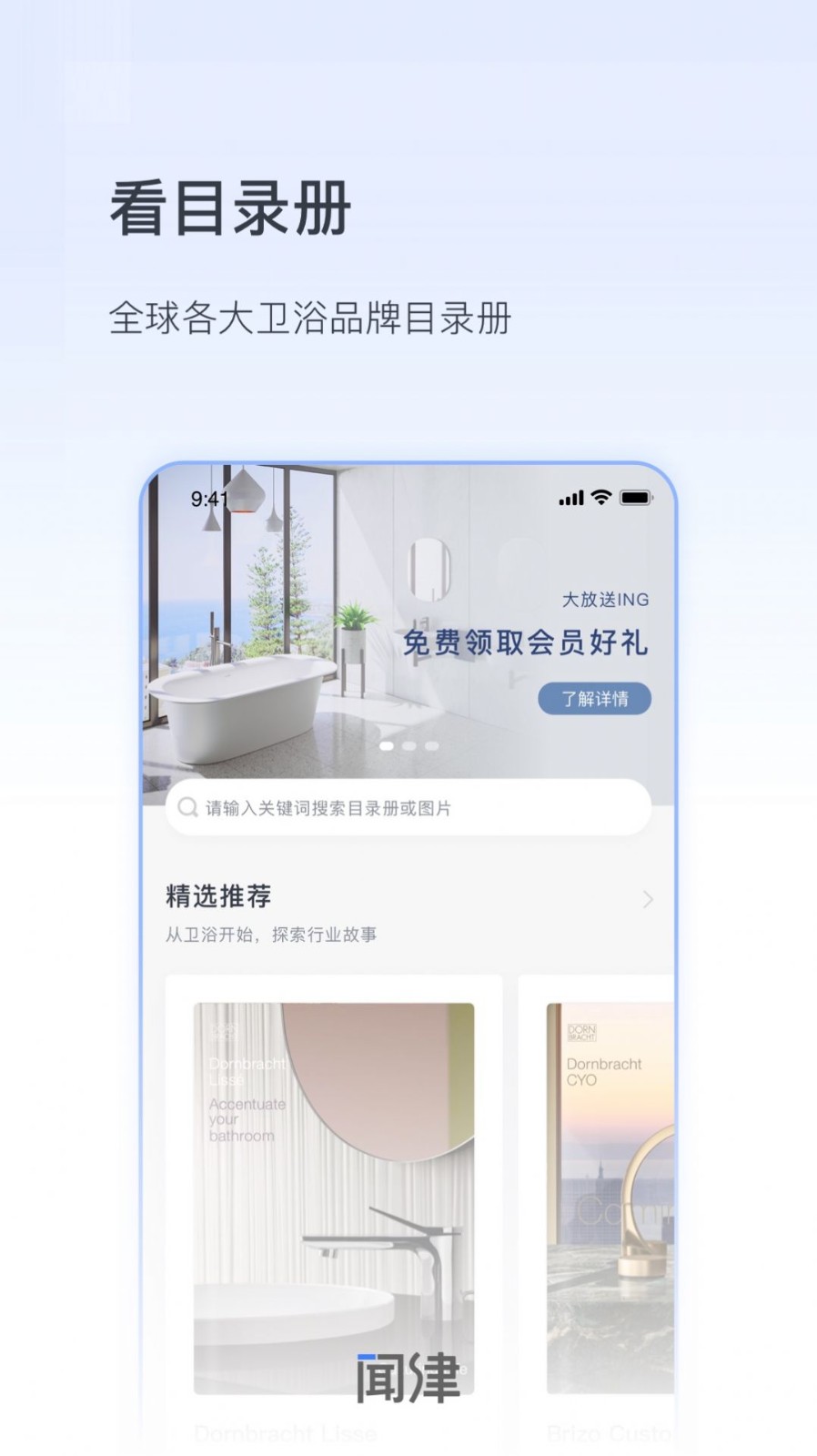 数字闻津app可以为众多用户提供面向多角色的卫浴购买平台,用户们可以通过使用该软件来享受为卫浴代理商、门店、水工、消费者提供的全面服务,该软件主要的前端载体为安卓和iOS,用户也可以通过微信小程序来进行使用。