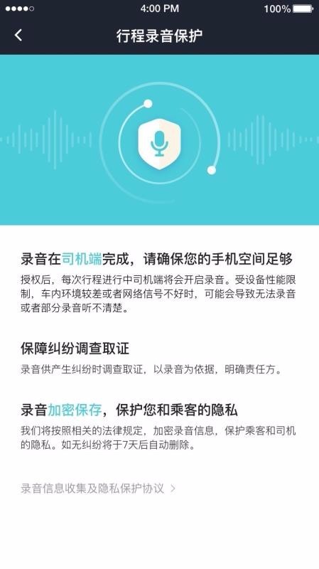 在服务订单的过程中,进行行程录音,并将其加密保存,保护司机和乘客的安全;