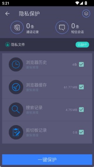 5.随时可以对自己的隐私文件、信息等进行一键保护,操作简单;